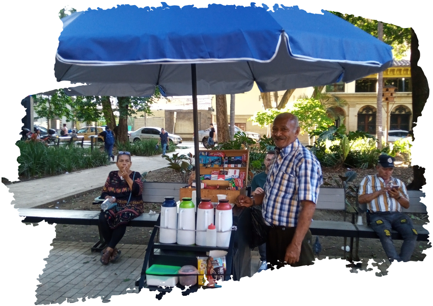 Empieza en la entrada principal del Museo de Antioquia, termina en la estación San Antonio del metro.